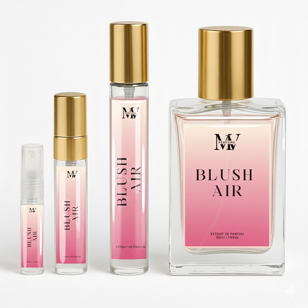Blush Air opens with delicate rose petals and soft creamy musk, wrapped in a clean floral breeze. Feminine, airy, and gracefully elegant — this scent feels like stepping into a fresh morning garden wrapped in a pastel pink glow.