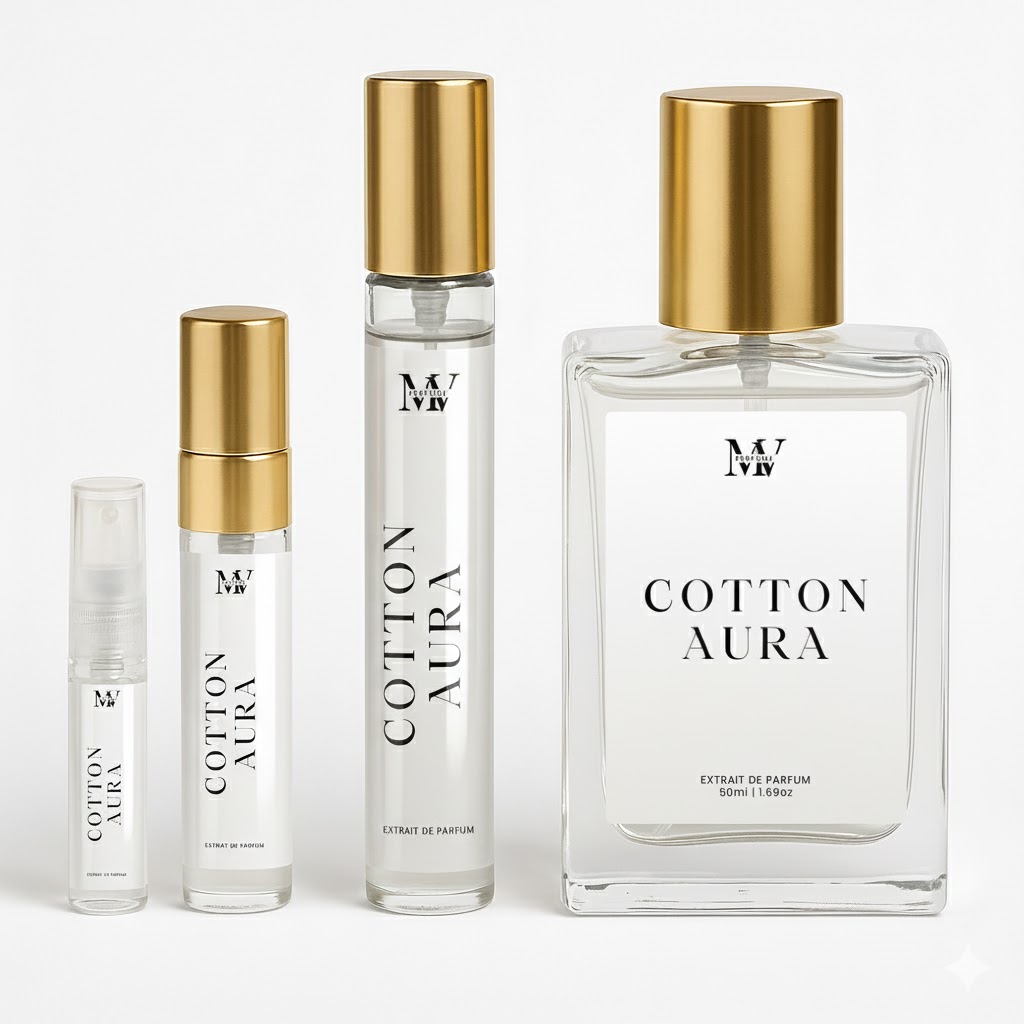 Cotton Aura smells like warm laundry fresh out the dryer — cotton musk, clean florals, and a soft whisper of sweetness. Comforting, clean, and cloud-like.