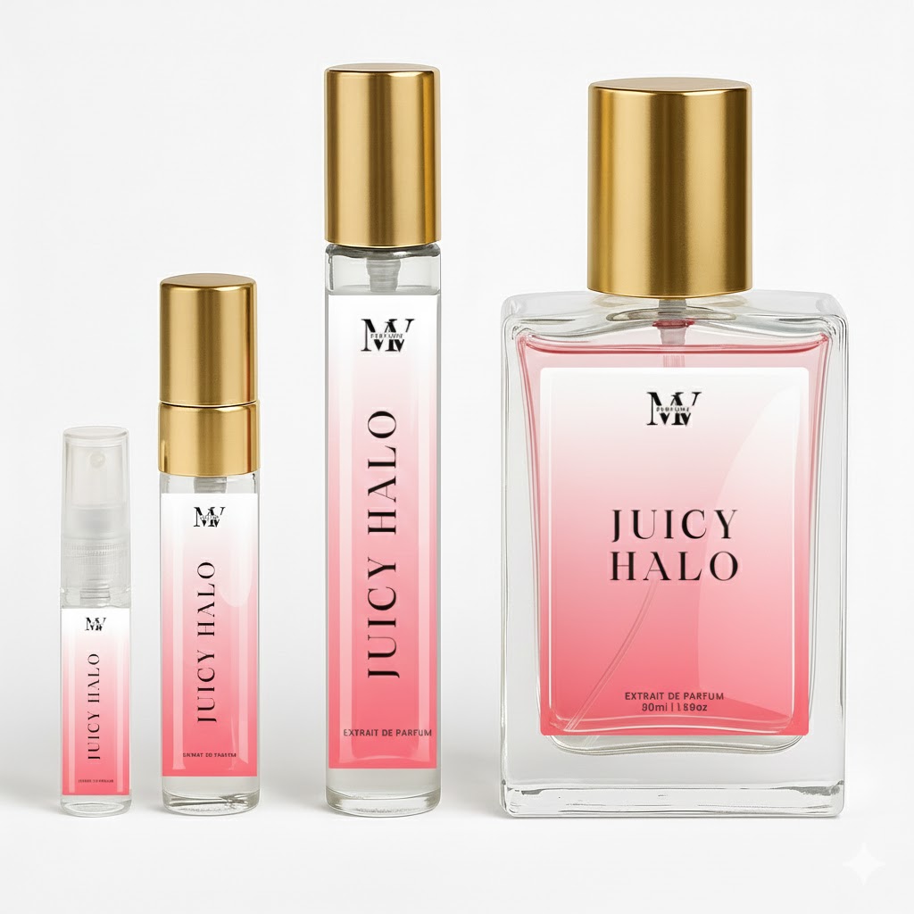 Juicy Halo opens with bright berry sweetness, soft florals, and warm vanilla. Pretty, playful, and feminine — this scent creates a juicy-sweet aura that follows you everywhere.